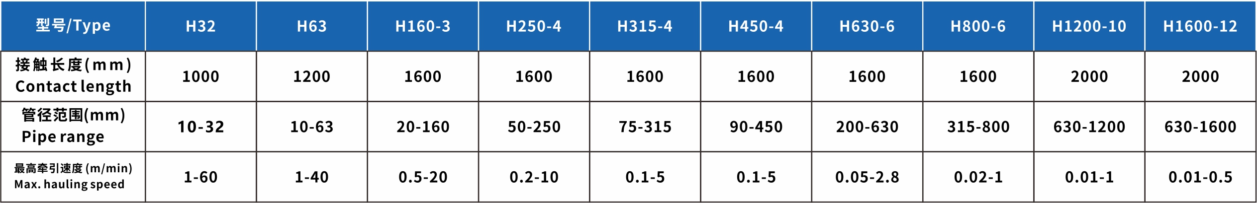 1、 Even at a low coefficient of friction between the pipe and the belt/rubber blocks, the cylinder with large size can still guarantee a very high traction.