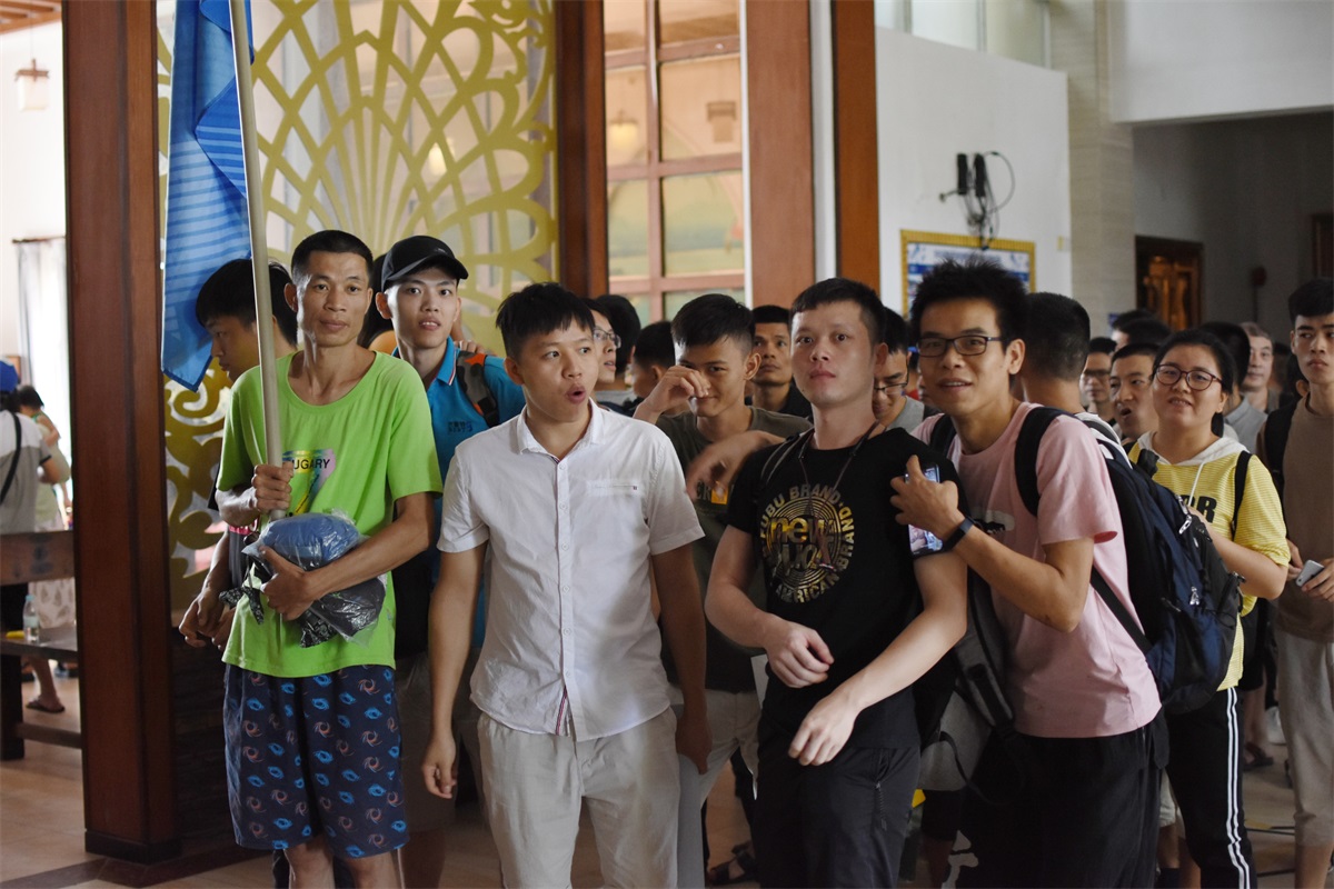 8月19號(hào)一大早,微風(fēng)拂面,大家都喜笑顏開,懷著無比激動(dòng)興奮的心情踏上前往沙扒灣青州島的旅途。手中天藍(lán)色的旗幟,仿佛已感受到大伙兒的陽(yáng)光與自信,也在空中翩翩起舞。